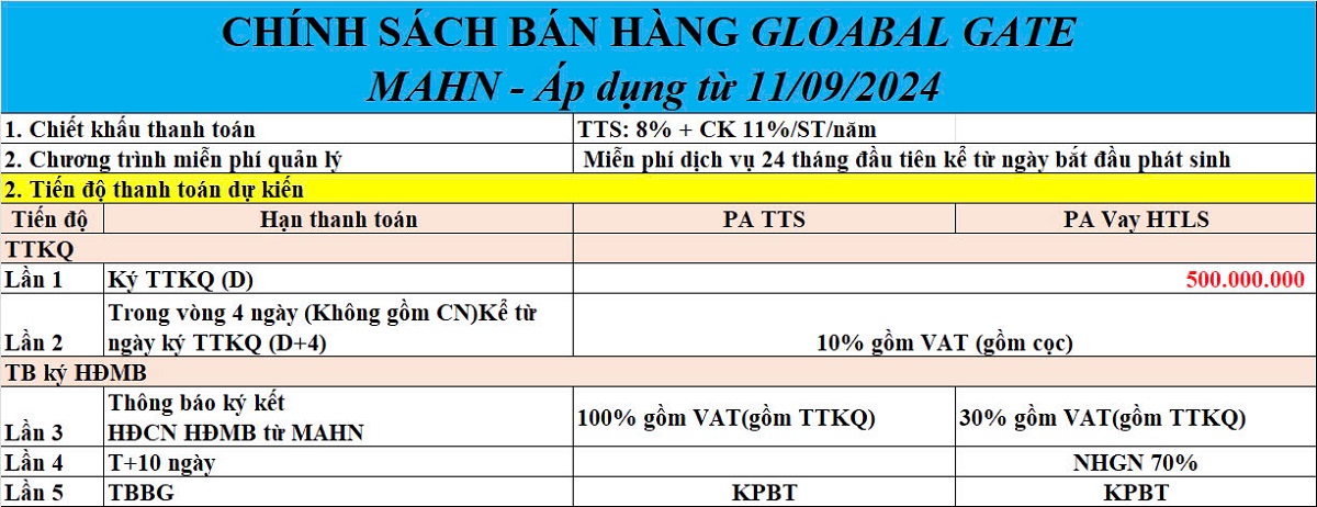 2. Chính Sách bán hàng Vinhomes Global Gate Cổ Loa, Đông Anh