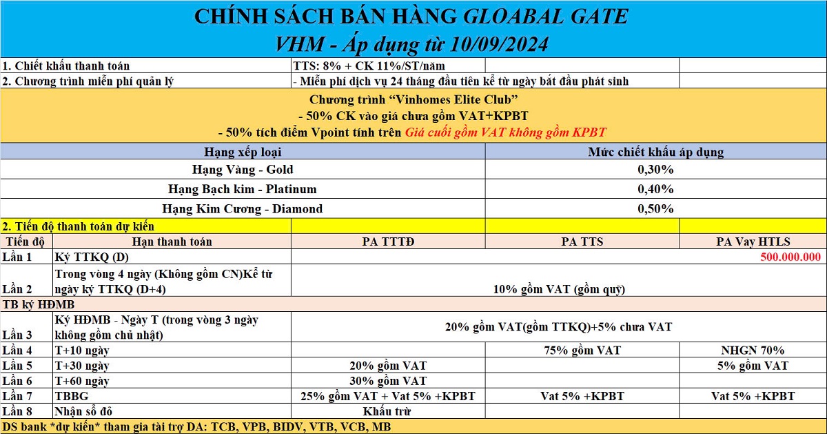 Cập Nhật Chính Sách Bán Hàng, Chương Trình Khuyến Mãi Vinhomes Cổ Loa, Global Gate, thông báo tăng giá và chính sách vay ngân hàng..