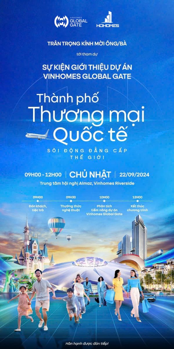 Đừng bỏ lỡ sự kiện mở bán Vinhomes Global Gate, lắng nghe những phân tích, chia sẻ về cơ hội đầu tư và tiềm năng phát triển đột phá của dự án từ các chuyên gia Bất động sản đầu ngành được diễn ra vào sáng Chủ Nhật tới đây tại khách sạn Meliá, 44 Lý Thường Kiệt, Trần Hưng Đạo, Hoàn Kiếm, Hà Nội.